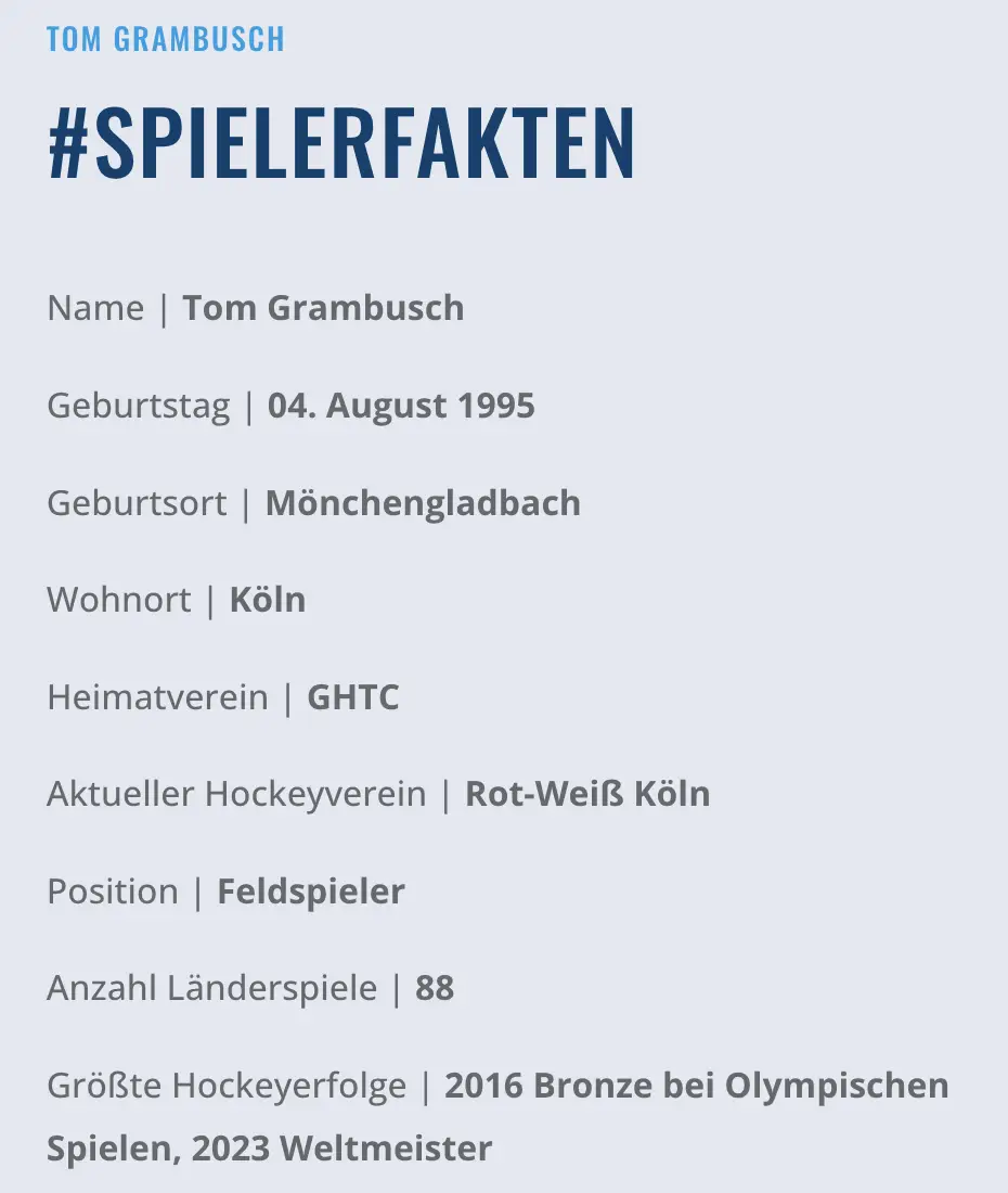 „Ich bin zuversichtlich, dass die Heim-EM ein super Event wird, bei dem am Ende auch eine Goldmedaille bei rausspringen kann!“ - Auch er hatte bereits mit fünf Jahren den Hockeyschläger in der Hand. 2016 gewann er bei den Olympischen Spielen in Rio de Janeiro die Bronzemedaille. Für seinen Verdienst erhielt er im gleichen Jahr das Silberne Lorbeerblatt. Bei der diesjährigen Weltmeisterschaft in Indien erzielte er zwei Tuniertore und holte mit der deutschen Mannschaft nach 17 Jahren den Titel zurück. Er und sein Bruder Mats Grambusch durften sich daraufhin in das Goldene Buch der Stadt Mönchengladbach eintragen. Neben dem Hockeysport führt er gemeinsam mit seinem Bruder ein Unternehmen in der Immobilienbranche.
