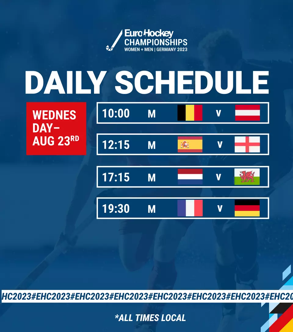 Die letzten Gruppenspiele der Herren werden ausgetragen. Belgien, die bereits als Halbfinalisten feststehen, treffen auf Österreich, die das Halbfinale nicht mehr erreichen können. Der Sieger der Partie Spanien gegen England wird das zweite Halbfinalticket der Gruppe A lösen. Am Abend spielen die HONAMAS, die sich mit einem Sieg den ersten Platz in der Gruppe B sichern würden.